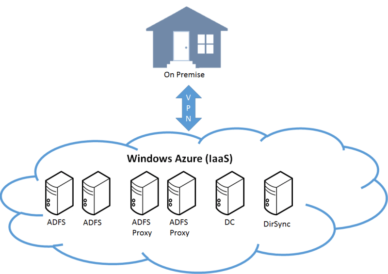 Server, ein ADFS Proxy sowie ein Server auf welchem DirSync läuft. Windows