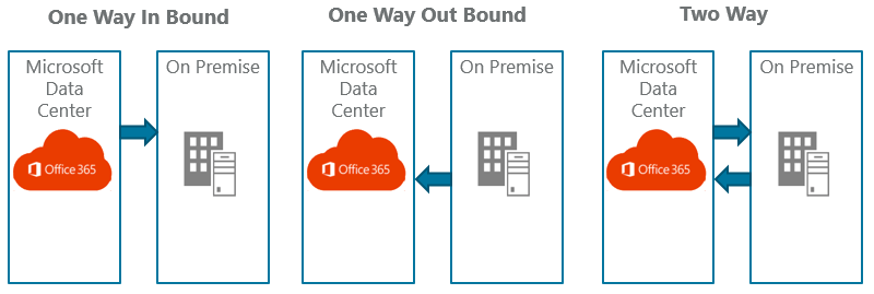 • One Way Out-Bound: Auf SharePoint Server 2013 On Premise kann Inhalt von Office 365 durchsucht werden.