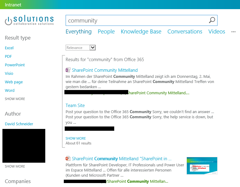 Wird die Hybrid Search in einem normalen Search Center aktiviert, sieht der Benutzer bei einer Suchabfrage Resultate aus beiden Umgebungen.