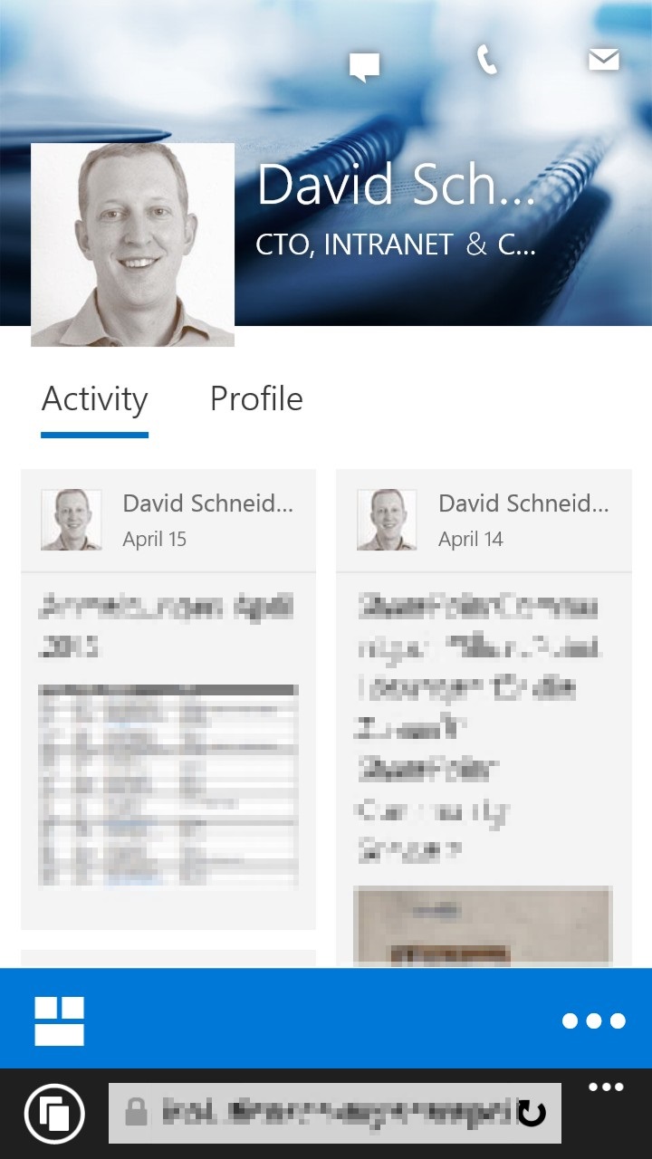 Es gilt zu beachten, dass auf OneDrive for Business jeder Benutzer eine weitere „About me“ Seite hat. Diese Seite zeigt neben den Profile Daten auch den Activity Feed an. Wer auf seinem Office 365 Tenant jedoch Yammer nutzt, sieht hier nicht viel. Gut möglich, dass diese Seite bald abgeschaltet wird.